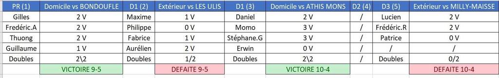 L’équipe N°3 affrontait ATHIS MONS dans une rencontre où notre équipe partait favorite sur le papier et qui l’a démontrée à la table en remportant une belle victoire sur le score de 10-4.